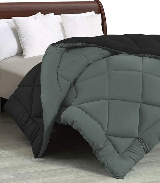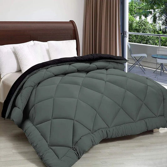 Cloth Fusion Reversible AC Comforter Set Double Bed Soft Microfibre King Size Quilt Blanket for Winter Black & Grey