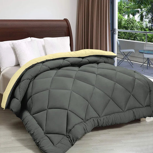 Cloth Fusion Reversible AC Comforter Set Double Bed Soft Microfibre King Size Quilt Blanket for Winter Yellow & Grey