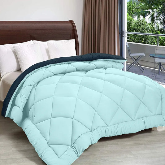 Cloth Fusion Reversible AC Comforter Single Bed Soft Microfibre Quilt Blanket for Winter Navy & Light Blue