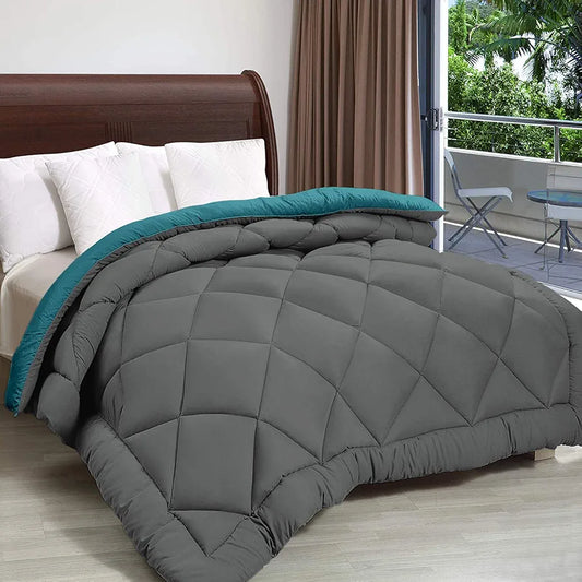 Cloth Fusion Reversible AC Comforter Single Bed Soft Microfibre Quilt Blanket for Winter Teal & Light Grey