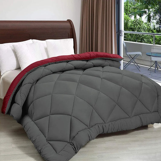 Cloth Fusion Reversible AC Comforter Set Double Bed Soft Microfibre King Size Quilt Blanket for Winter Grey & Maroon