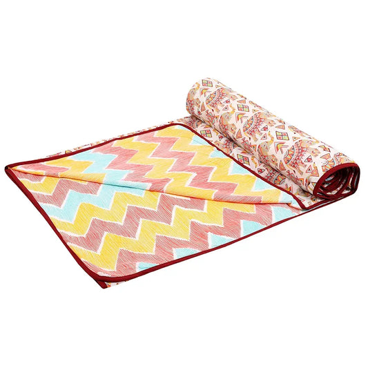 Cloth Fusion Reversible Dohar Double Bed Soft Cotton Blend AC Blanket for Summer Multicolor