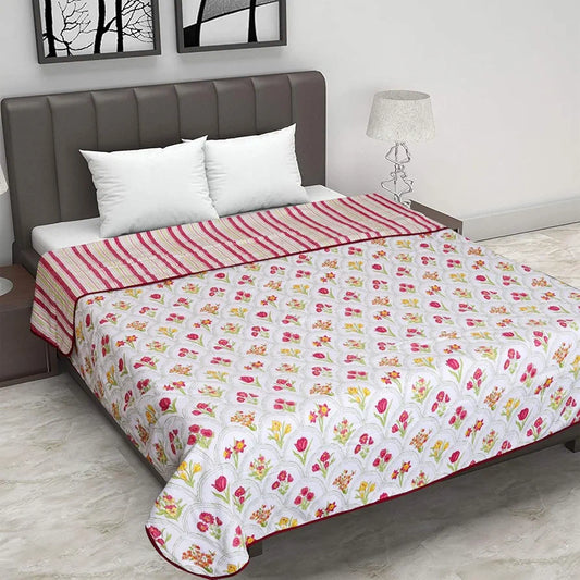 Cloth Fusion Reversible Dohar Double Bed, Soft Cotton Blend AC Blanket for Summer Multicolor