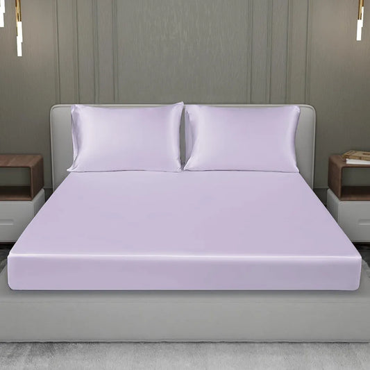 Cloth Fusion Satin Elastic Fitted Bedsheets Double Bed Luxury Queen Size Bed Sheet with 2 Pillow Covers Lilac Colour