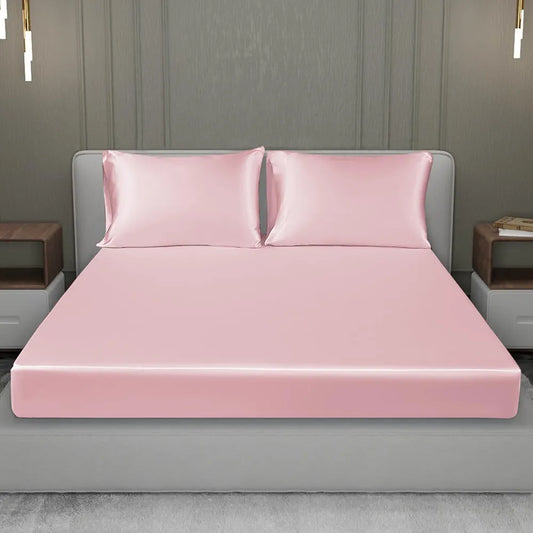 Cloth Fusion Satin Elastic Fitted Bedsheets Double Bed Luxury Queen Size Bed Sheet with 2 Pillow Covers Baby Pink