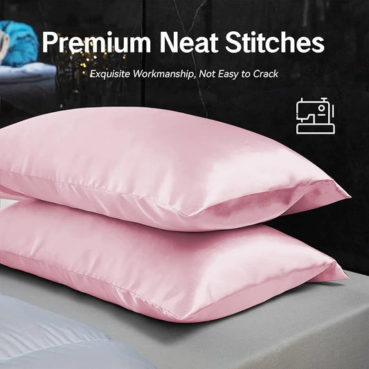 Cloth Fusion Satin Pillow Cover Set of 2 Pillow Case with 3 Satin Soft Scrunchies Baby Pink