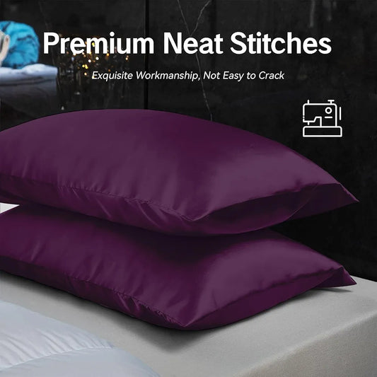 Cloth Fusion Satin Pillow Cover Set of 2 Perfect Pillow case with 3 Satin Soft Scrunchies for Women Solid 400 TC Wine