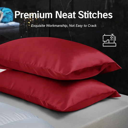 Cloth Fusion Satin Pillow Cover Set of 2 for Pillow Case with 3 Satin Soft Scrunchies for Women Crimson Red