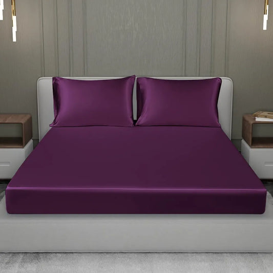 Cloth Fusion Solid 280 TC Satin Elastic Fitted Bedsheet for Double Bed King Size with 2 Pillow Covers Wine