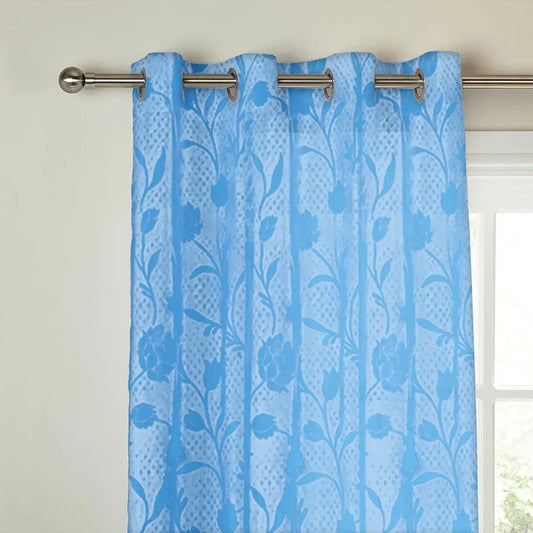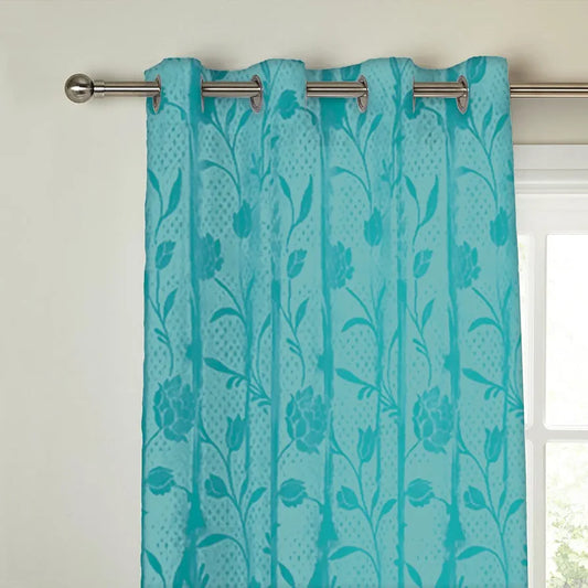 Cloth Fusion Sheer Curtain Long Door 9 Feet Rose-Turquoise