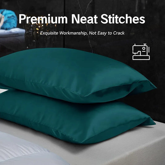 Cloth Fusion Satin Pillow Cover Set of 2 Pillow case with 3 Satin Soft Scrunchies Peacock Green