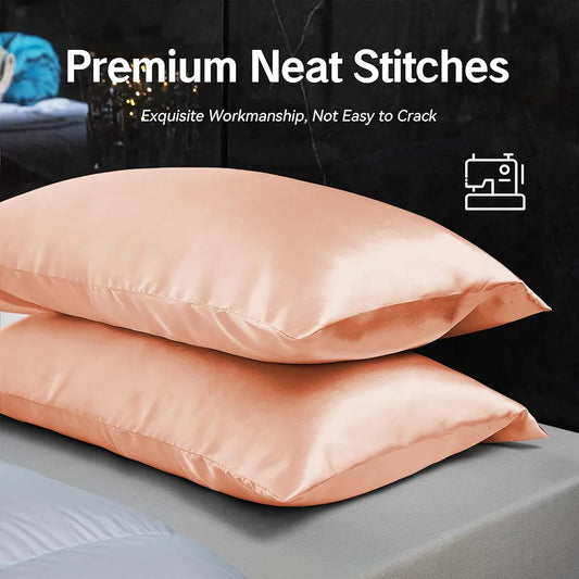 Cloth Fusion Satin Pillow Cover Set of 2 Pillow case with 3 Satin Soft Scrunchies Peach Colour