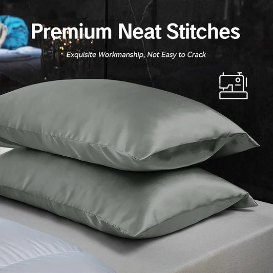 Cloth Fusion Satin Pillow Cover Set of 2 Pillow Case with 3 Satin Soft Scrunchies Silver