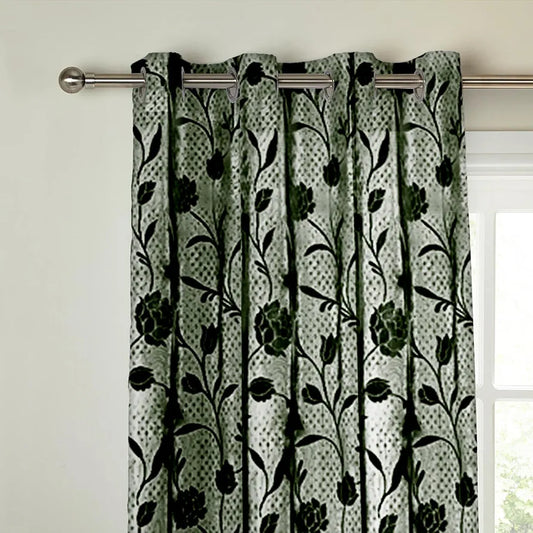Cloth Fusion Solid Blackout Door Curtains 7 Feet Long Set of 2 Pista Colour
