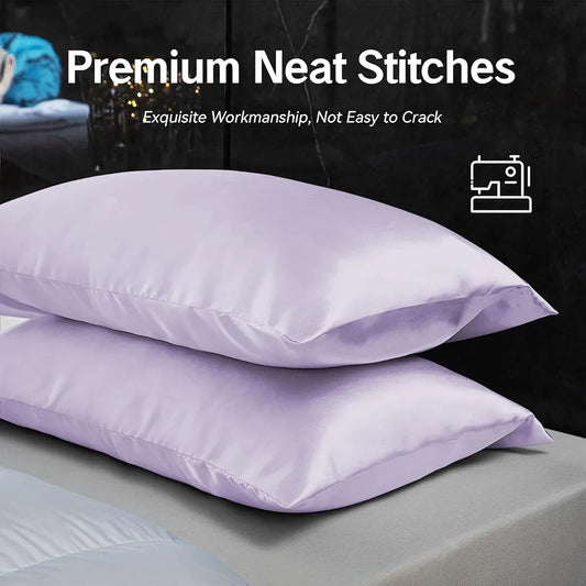 Cloth Fusion Satin Pillow Cover Set of 2 Pillow case with 3 Satin Soft Scrunchies Lilac Colour