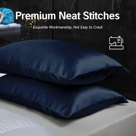 Cloth Fusion Satin Pillow Cover Set of 2 Pillow case with 3 Satin Soft Scrunchies Navy Colour