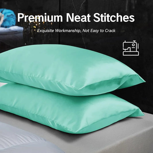 Cloth Fusion Satin Pillow Cover Set of 2 Pillow case with 3 Satin Soft Scrunchies Sea Green