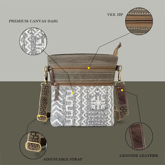 Cotton Dari And Leather Material Messenger Sling Bag For Women | Green