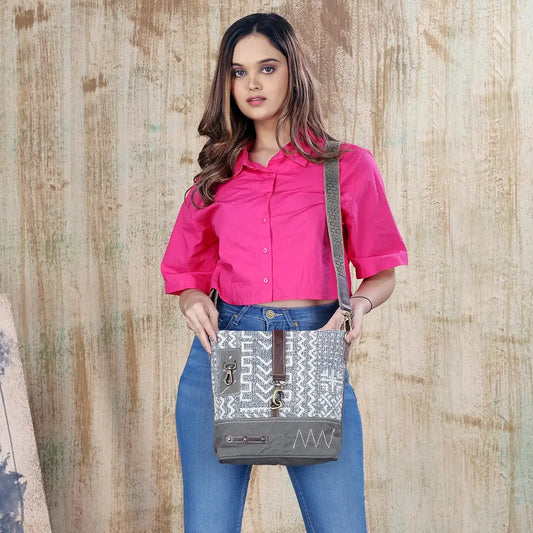Cotton Material Embroidery Designs Medium Size Sling Bag For Women