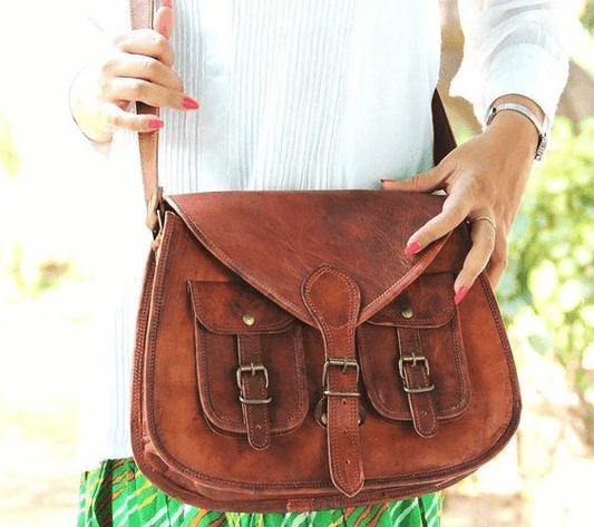 CraftShades -9.11 Inch Cross Body Double Pocket Sling Goat Leather Bag for Boys & Girls