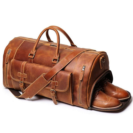 Craftshades 24 inch Buffalo Leather Duffle Bag with Shoes Compartment