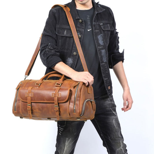 CraftShades 20 inch Buffalo Leather Duffle Bag with Shoes Compartment