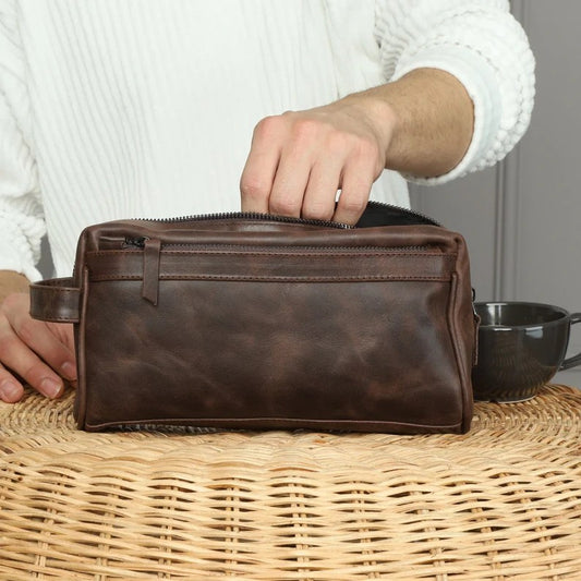 Craftshades Brown Mens Toiletry Bag, Leather Travel Case, Leather Toiletry Bag