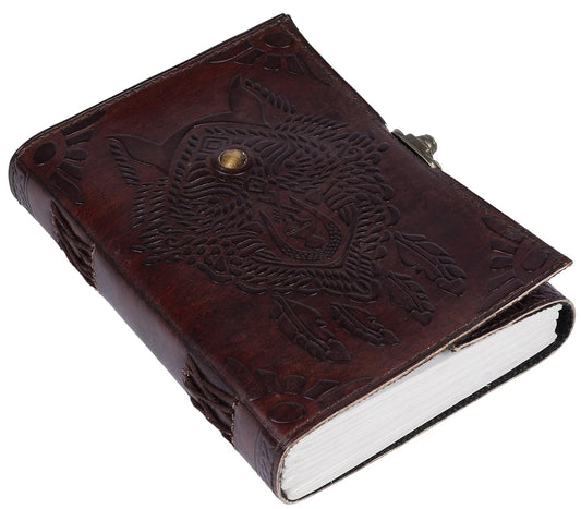 Craftshades- Handmade Leather Diary Embossed With Star, Journey & Double Wolf Diary With Antique Lock | 5.7 Inch | Double Wolf