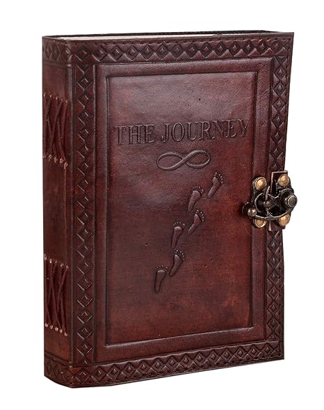 Craftshades- Handmade Leather Diary Embossed With Star, Journey & Double Wolf Diary With Antique Lock 5.7 Inch | the Journey