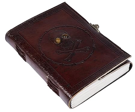 Craftshades- Handmade Leather Diary Embossed With Skull Antique Lock Closure Pefect for Artist | Brown Colour | 5×7 Inch Skull