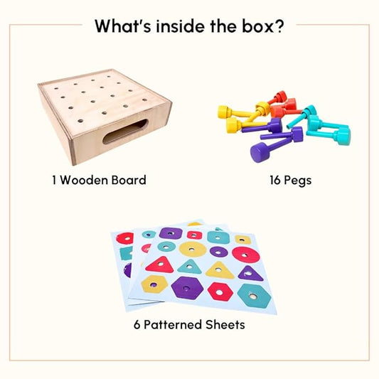 Curious Cub Montessori Stacking and Colour Matching Peg Board | Hand-eye Coordination & Brain Development