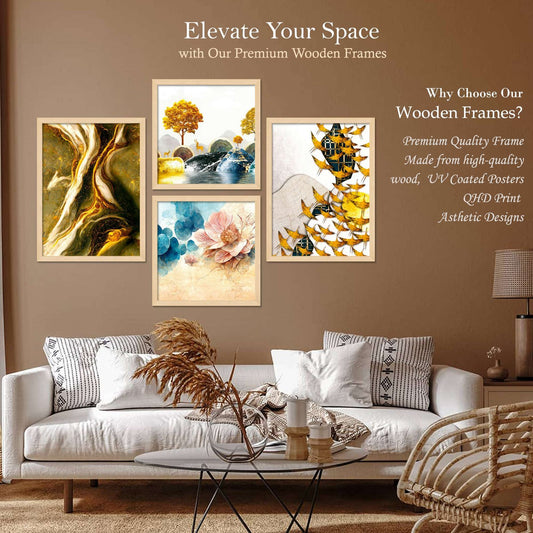 Digital Wall Painting Tranquil Dreams Wall Decor Modern Pastel & Gold-Toned Painting Set