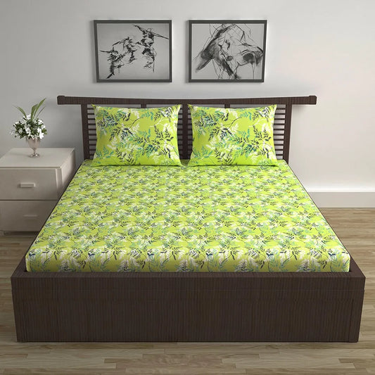 Divine Casa - 144 TC Super Soft 100% Cotton Bedsheet for Double Bed 144 Thread Count Colour Lime Breeze