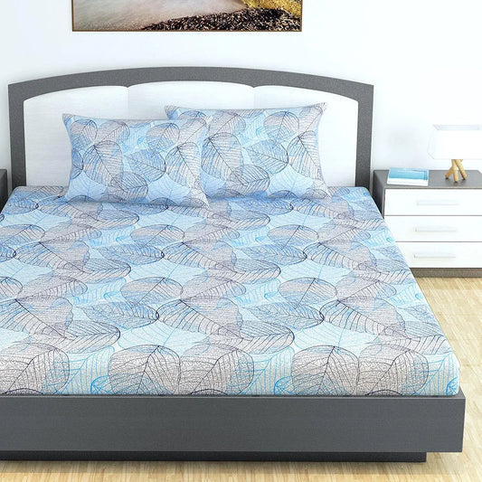Divine Casa 100% Cotton 144 TC Bedsheet for Double Bed King Size Bedsheet with 2 Pillow Covers Colour Blue