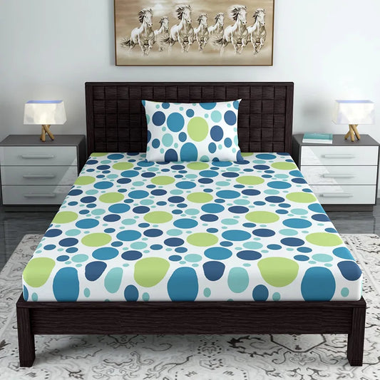 Divine Casa 100% Cotton Bedsheet for Single Bed 144 TC Bedsheet Single Size Bed Cotton with 1 Pillow Cover Colour Blue Lagoon