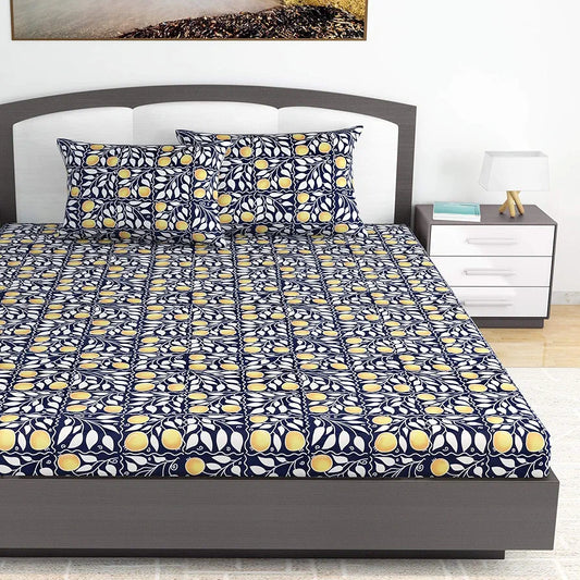 Divine Casa 100% Cotton 144 TC King Size Bedsheet with 2 Pillow Covers Colour Navy & Orange