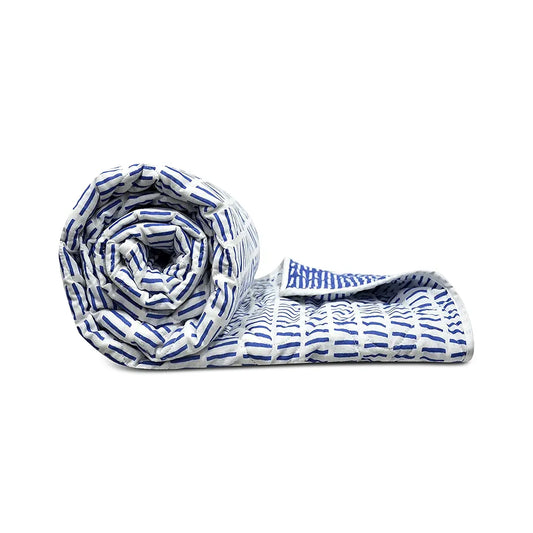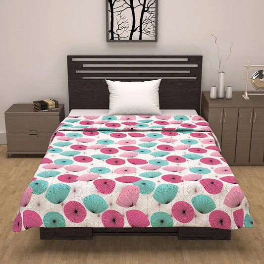 Divine Casa 100% Cotton Reversible Lightweight Printed Single Bed AC Dohar Blanket Colour White & Blue
