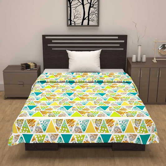 Divine Casa 100% Cotton Reversible Single Bed Dohar Lightweight & Soft AC Blanket Summer Quilt Colour Geometric Silver & Lemon