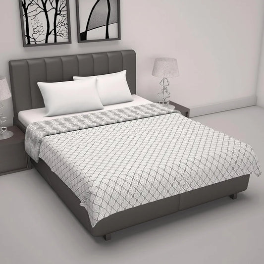 Divine Casa 120 GSM Cotton Single Bed Comforter Soft & Lightweight Reversible All-Season Blanket Colour Marlin White
