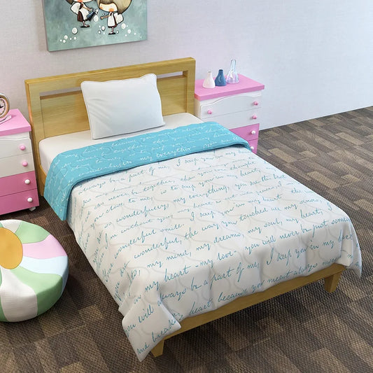 Divine Casa 120 GSM Microfiber Reversible Kids Single Bed Comforter Ultra-Soft Toddler Blanket Colour Blue Topaz
