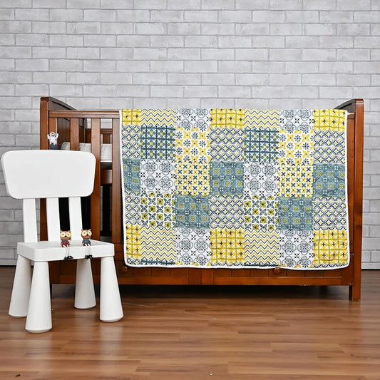 Divine Casa 120 GSM Microfiber Reversible Kids Single Bed Comforter Ultra-Soft Toddler Blanket Colour Sunflower Ash Tile