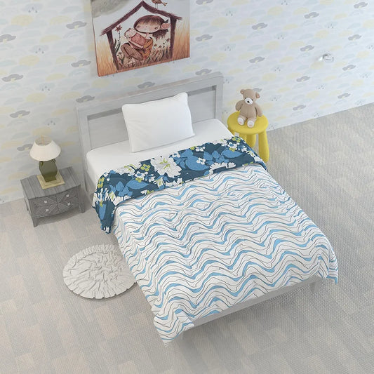 Divine Casa 120 GSM Microfiber Reversible Kids Single Bed Comforter Ultra-Soft Toddler Blanket Colour Celestial Blue