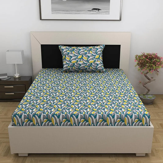 Divine Casa 144 TC 100% Cotton Bedsheet for Single Bed with 1 Pillow Cover Colour Lemon Drop