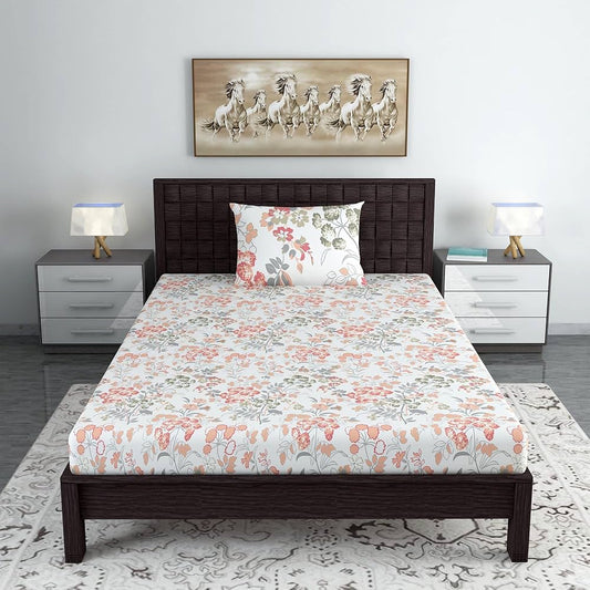 Divine Casa 144 TC 100% Cotton Bedsheet for Single Bed with 1 Pillow Cover Colour Peach Blush