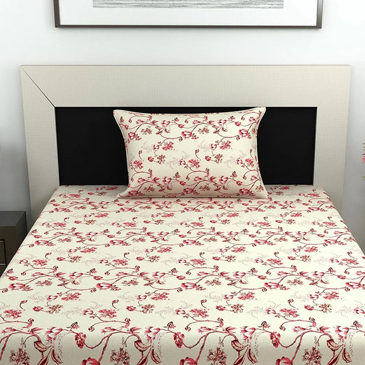 Divine Casa 144 TC 100% Cotton Bedsheet for Single Bed with 1 Pillow Cover Colour Coral Pink
