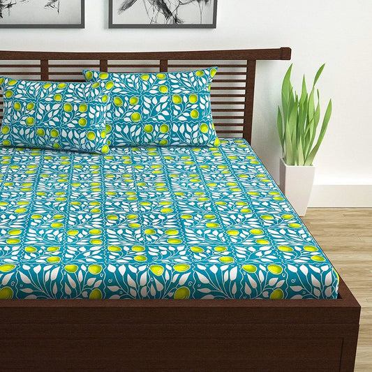 Divine Casa 144 TC 100% Cotton Bedsheet for Double Bed with 2 Pillow CoverColour Green & Blue
