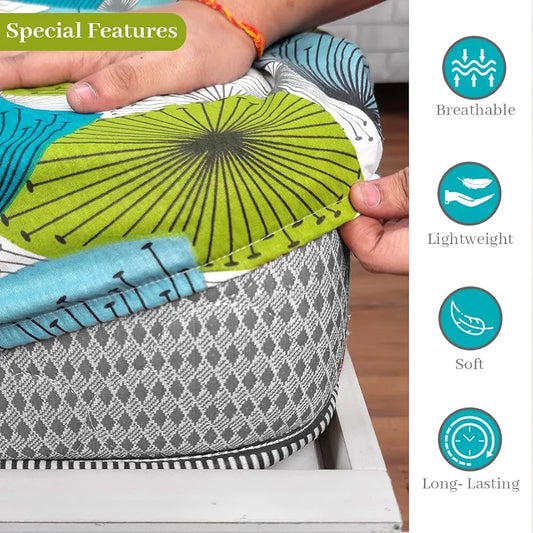 Divine Casa 144 TC 100% Cotton Floral Green Breathable Bedsheet King Size Bed Cotton Elastic Fitted Colour Baltic Sea