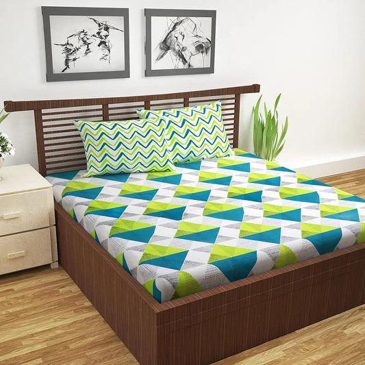 Divine Casa 144 TC 100% Cotton Double Bedsheet with 2 Pillow Covers Geometric Pattern Colour Blue Lagoon
