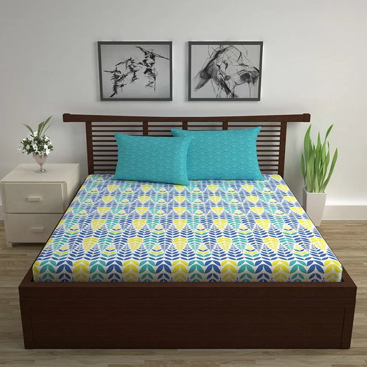 Divine Casa 144 TC Super Soft 100% Cotton Bedsheet for Double Bed 144 Thread Count Geometric Colour Blue Lagoon