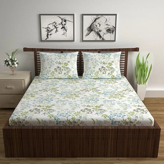 Divine Casa 144 TC Super Soft 100% Cotton Bedsheet for Double Bed 144 Thread Count Floral Colour Green Blush